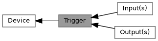 | A device can have one or more device trigger outputs, usually available as pins on an extension connector on the instrument. | |